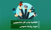 روابط عمومی دانشگاه در نظر دارد جهت بهبود و ارتقاء امور جاری و اطلاع رسانی، نسبت به استفاده از نیروهای باتجربه و علاقمند آقا بعنوان همکار دانشجویی اقدام نماید.